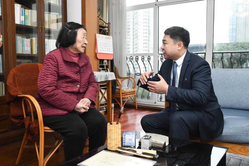 在上海于漪先生家中,邢光代表学校党委和全校四万名师生向先生致以诚挚敬意,简要报告了曲阜师范大学办学情况和教师博物馆概况,感谢先生倾心指导和支持博物馆及国家师德教育基地建设工作。