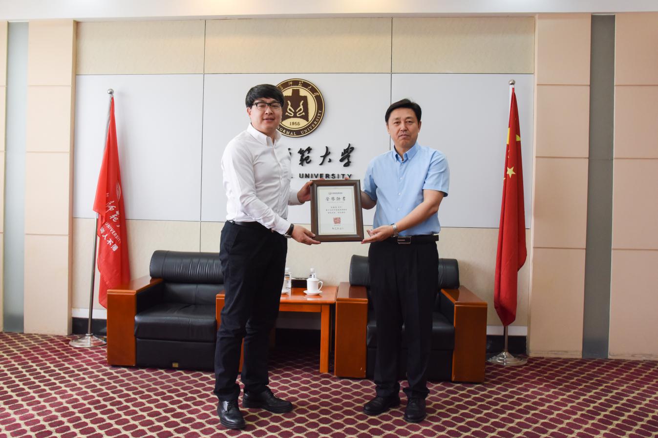 随后,张洪海为史振亮校友颁发了捐赠荣誉证书和兼职教授聘书。