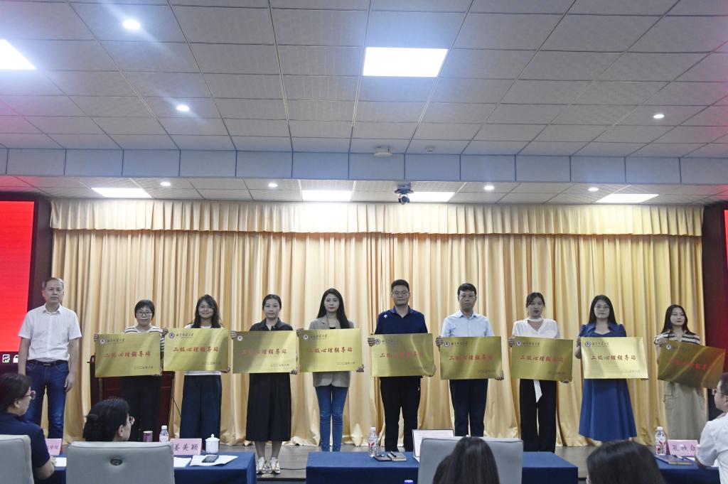 培训期间还同步组织了学校首届辅导员发展系列论坛成果展示活动。正式公布了学校首批建设的9个二级心理辅导站并举行授牌仪式。学生工作处处长姜美颖、团委书记孔轶众分别对2025年下半年的学生工作、共青团工作进行了详细部署。