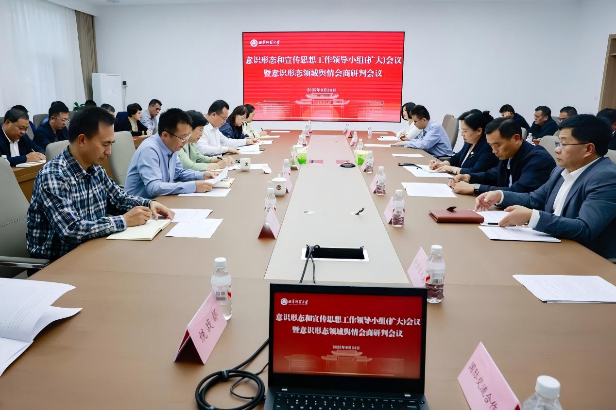 党委宣传部讯 9月24日,学校召开意识形态和宣传思想工作领导小组(扩大)会议暨意识形态领域舆情会商研判会议,并举行网络舆情实战演练。