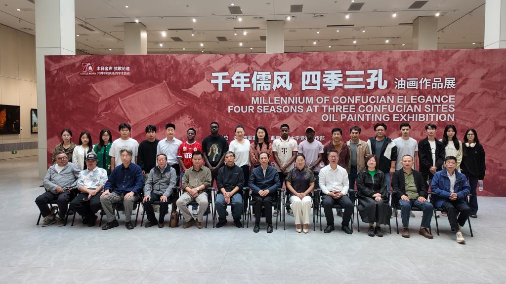 曲阜师范大学美术与书法学、孔子文化研究院,济宁学院美术学院相关负责人,参展艺术家、驻济宁高校师生及留学生代表参加活动。