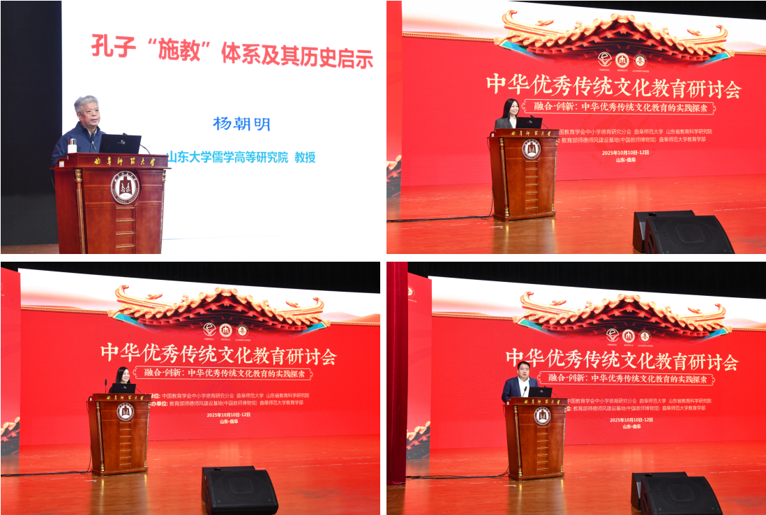 研讨会由中国教育学会中小学德育研究分会、曲阜师范大学、山东省教育科学研究院联合主办,教育部师德师风建设基地(中国教师博物馆)、曲阜师范大学教育学部承办。会议以“融合·创新:中华优秀传统文化教育的实践探索”为主题,精心设计了专家报告、中小学课例展示、现场教学等多样化、立体化的内容。