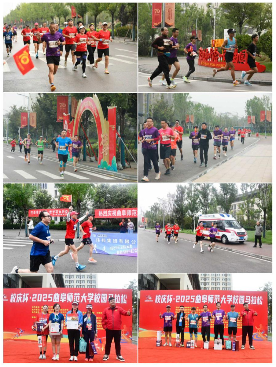 本次校园马拉松是学校校庆系列活动之一,校园马拉松的赛道正是曲阜师范大学建校70年征途的缩影——每一步奔跑,都是对“勤奋进取”校风的践行;每一次坚持,都是对“顶天立地、知行合一”精神的传承。这条路上,有前辈栉风沐雨的足迹,更有学子逐梦前行的身影。同时,本次赛事奖牌设计独具匠心,融合校徽与“七十校庆”元素,镌刻孔子像和学校南门等重要标识,兼具纪念意义与收藏价值。