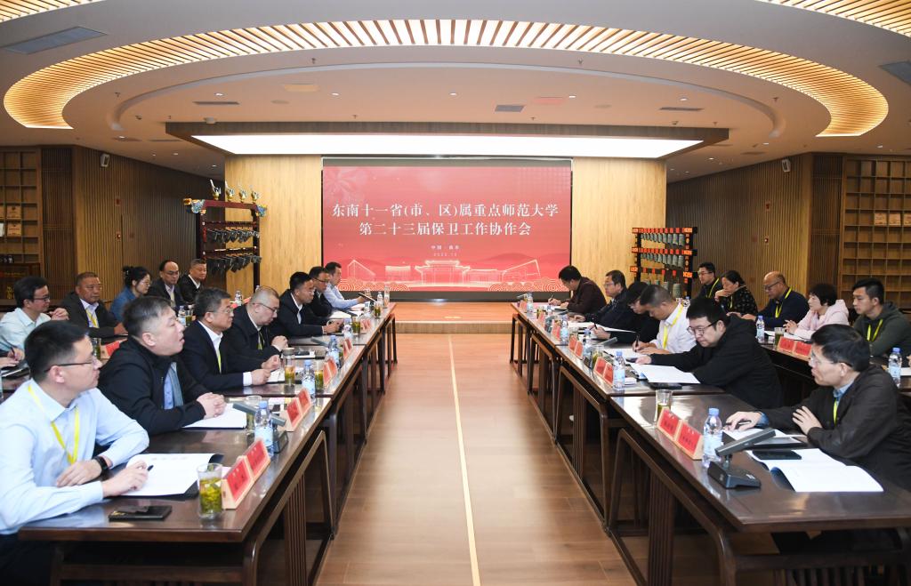 据悉,本次会议由曲阜师范大学与山东师范大学联合承办,来自南京师范大学、华南师范大学、湖南师范大学、浙江师范大学、福建师范大学、安徽师范大学、江西师范大学、上海师范大学、海南师范大学、广西师范大学等12所成员高校的保卫部门负责人及代表参加会议。