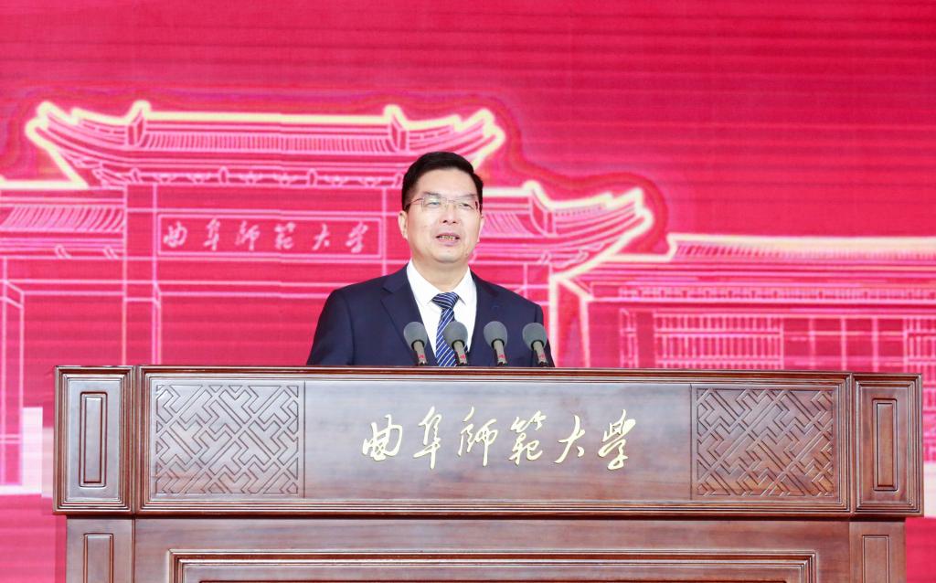 国家级青年人才、曲阜师范大学物理工程学院教授刘晓兵作为教师代表发言,他表示,老一辈曲园人的光辉足迹令人自豪,一代代曲园人对于“办好教育”的执着,引领和激励着新时代曲园人接力奔跑、勇毅前行。