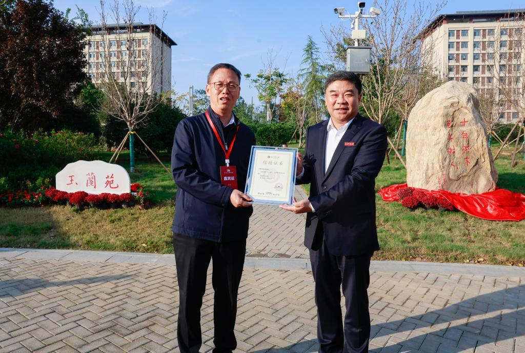 邢光代表学校向广大上海校友致以诚挚感谢,并向上海校友代表鹿传欣颁发捐赠证书。他表示,上海校友多年来从不同角度、在不同岗位上持续关注并支持母校发展,为学校建设注入了源源不断的动力,此次捐建的“玉兰苑”,不仅是校友心系母校的生动见证,更彰显了校友与母校之间的深厚情感。