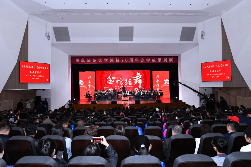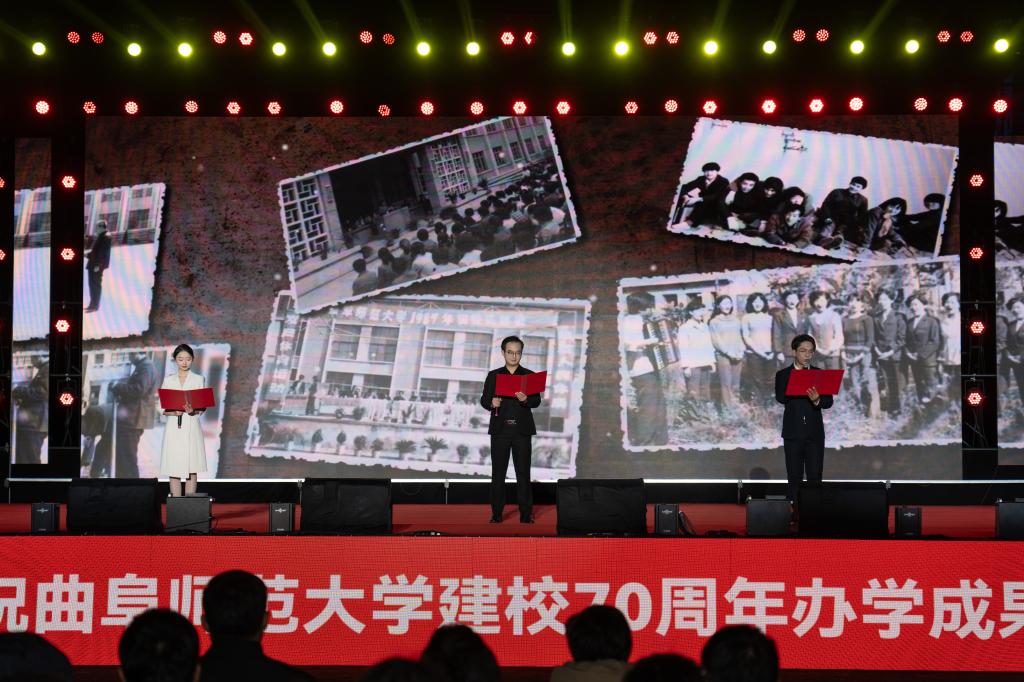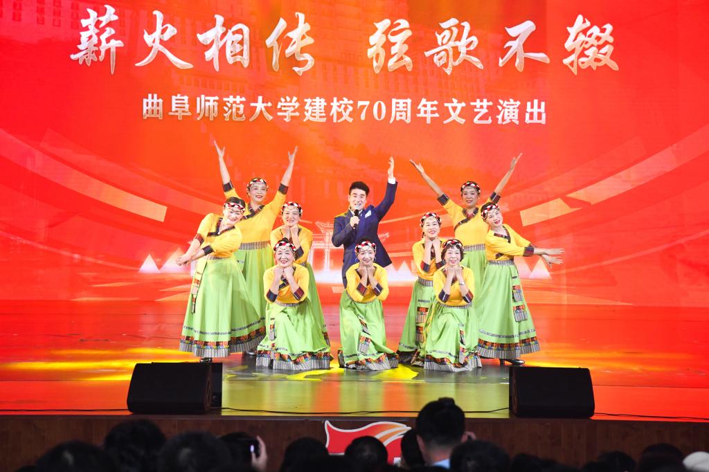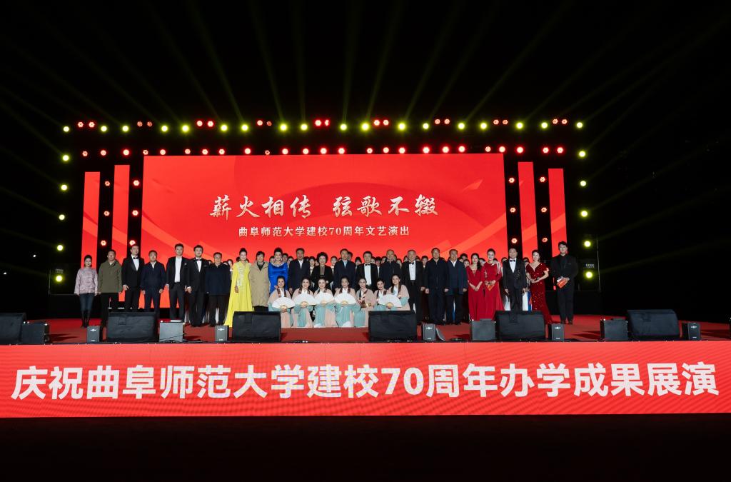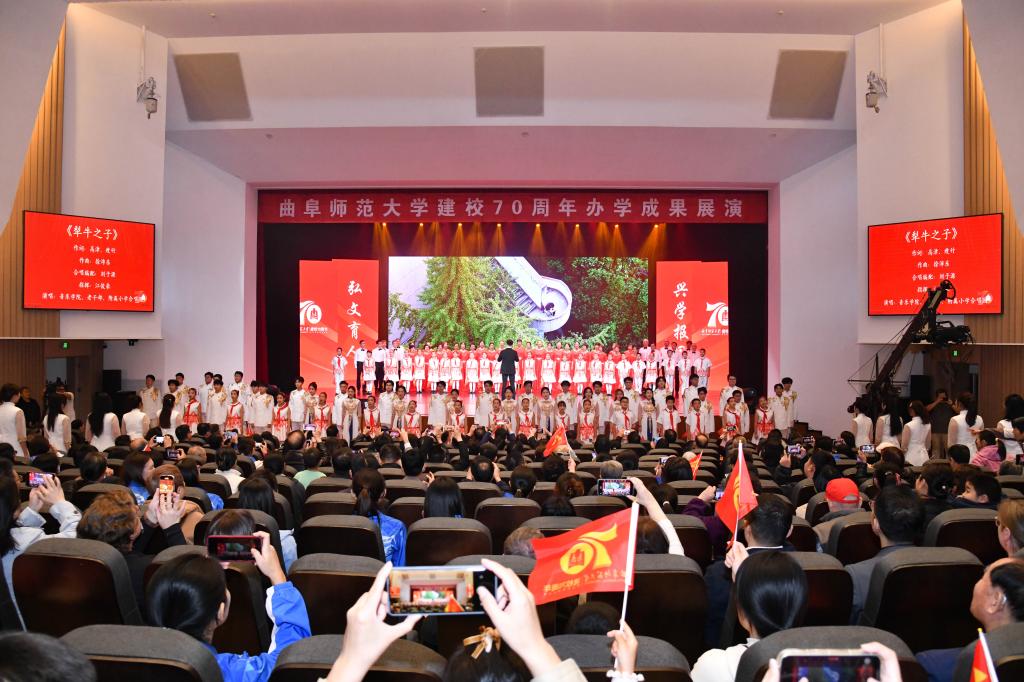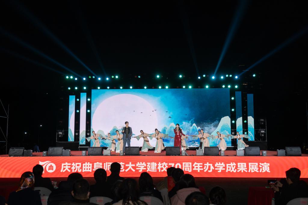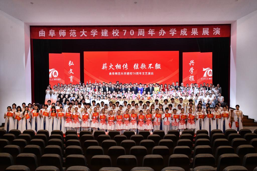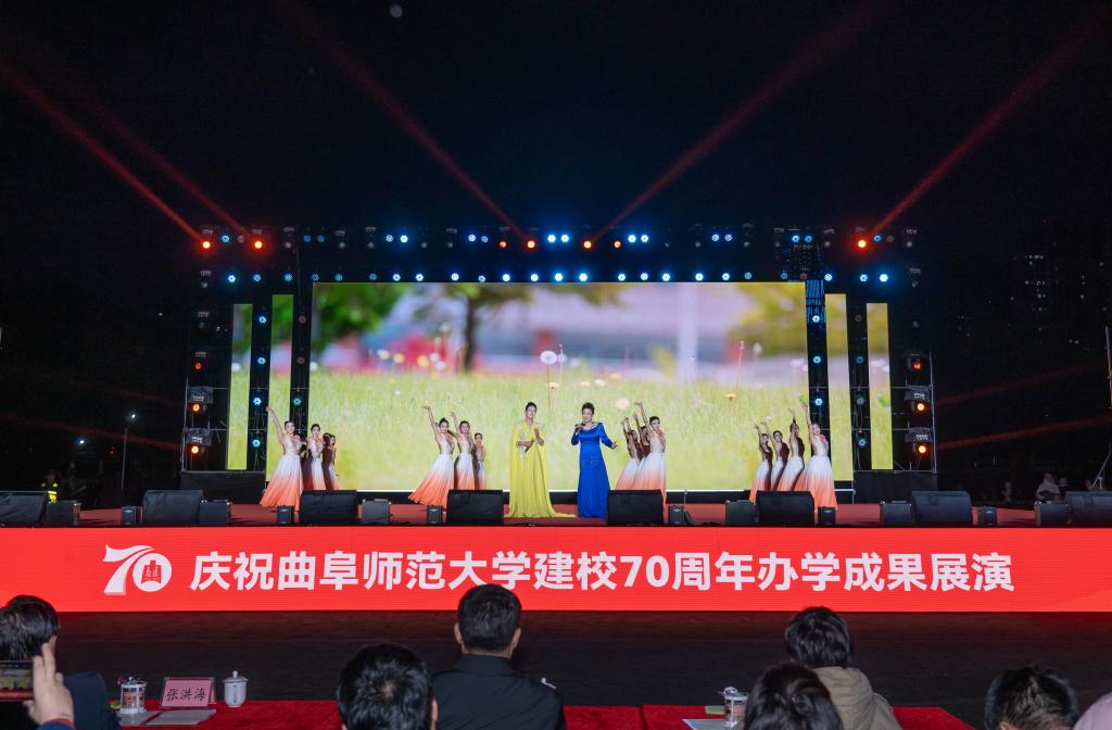展演气势恢宏、流光溢彩,以歌曲联唱、舞蹈、诗朗诵、合唱等多种艺术形式联袂呈现,奏响了学校70周年华诞的精彩乐章,生动展现了曲阜师范大学七十年来在传承儒家文化、深耕教育科研、培育时代新人的征程中所书写的坚守史、创新史与育人史。整场演出热情洋溢,传递出矢志不渝建设世界知名的高水平孔子家乡大学的奋斗之志。