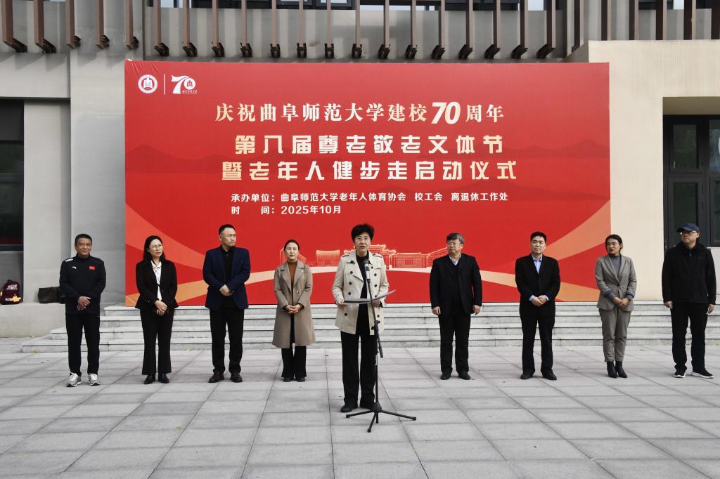 离退休工作处讯 为庆祝建校70周年,弘扬尊老敬老传统美德,丰富离退休教职工文化生活,10月29日,曲阜师范大学举办第八届“夕阳红 曲园情”尊老敬老文体节暨老年人健步走活动。学校党委副书记李志红出席并致辞。