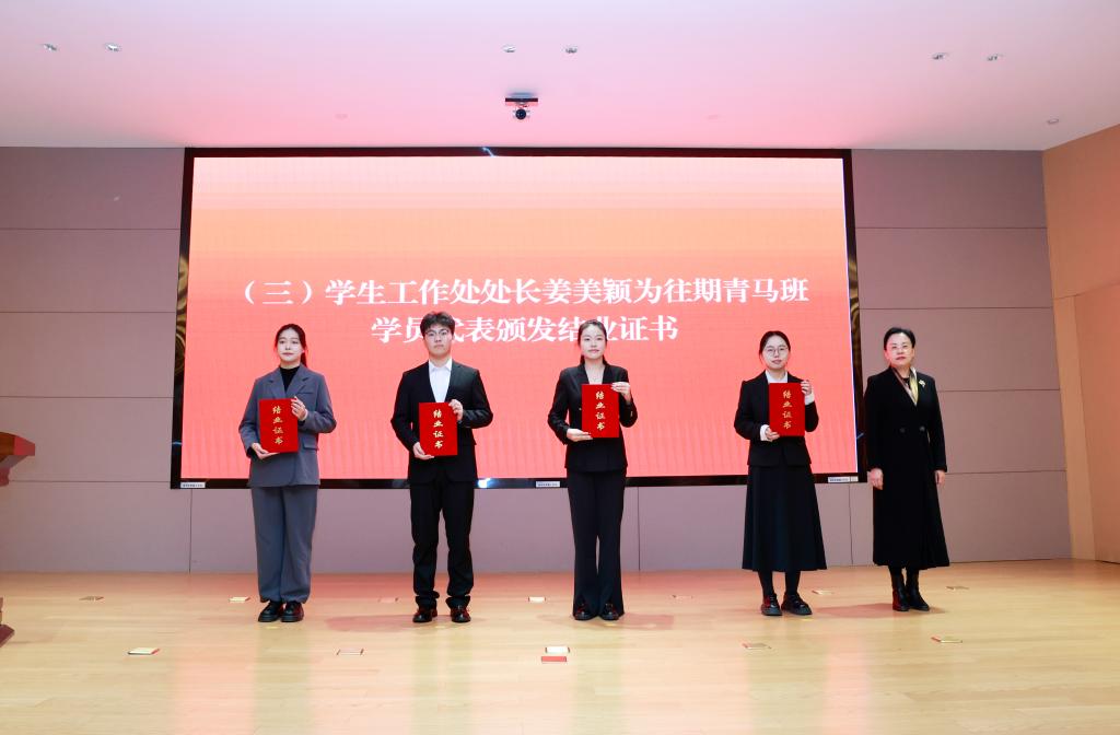 仪式上,学生工作处处长姜美颖为往届“青马工程”培训班学员代表颁发结业证书,党校常务副校长季塞南宣读2025—2026学年“青马工程”培训方案,往届学员代表、教育学院宋佳琦汇报了过去一年在理论学习、社会实践、志愿服务等方面取得的丰硕成果,本届学员代表、翻译学院张昕琦作表态发言。