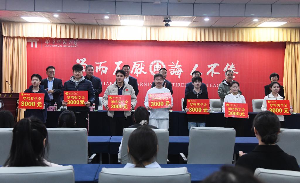 李照表示,齐鲁理工学院与曲阜师范大学,同根同源,共承齐鲁文脉,“翠鸣奖学金”自2022年设立以来先后资助了四百名曲阜师大研究生,希望同学们秉承“学而不厌,诲人不倦”校训,让学术创新与道德修为同频共振,将个人理想融入民族复兴的洪流,用科学创新攻克技术壁垒,用实践的脚步让学术成果落地生根。