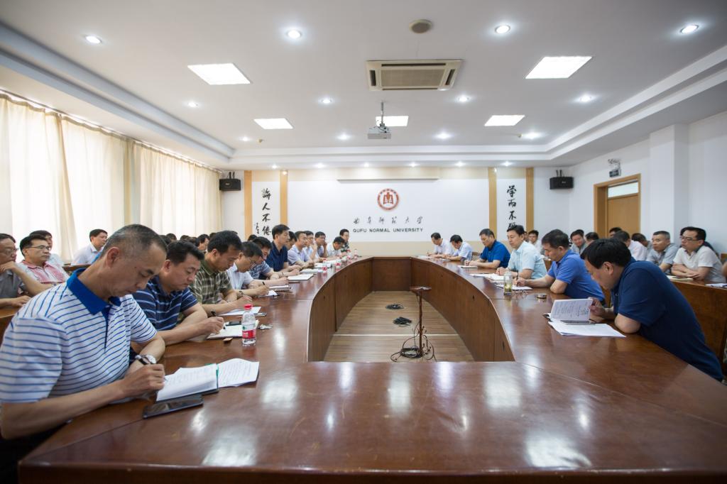 张洪海指出,在年初召开的全校干部大会上,党委书记戚万学代表学校党委提出了“写好教育奋进之笔,答好曲师复兴考卷”的号召和要求,高质量完成全年任务、高水平推进既定部署,对于落实“十三五”、进军“双一流”、走好复兴路至为重要。