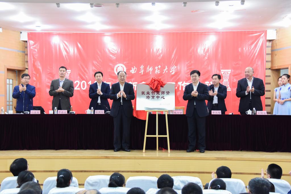 会上,夏鲁青和戚万学还共同为曲阜师范大学就业创业师资培育中心揭牌。