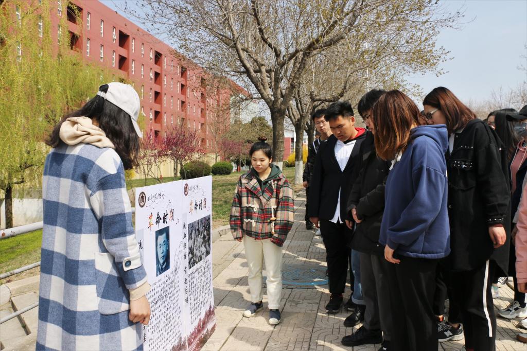 翠柏凝春,万古流芳。一年一度的清明节,是中国人缅怀先人、寄托哀思的日子,在幸福和平的年代,更不应忘记曾经为国家民族奋斗牺牲的英雄和先烈。为贯彻共青团中央、教育部等10部委联合下发的“传承·2019清明祭英烈”宣传教育活动通知,激发广大师生对英烈精神的崇尚、弘扬和传承,以奋发有为的精神状态迎接新中国成立70周年,我校团委开展系列纪念活动,缅怀革命烈士,让英雄的故事永续传承。