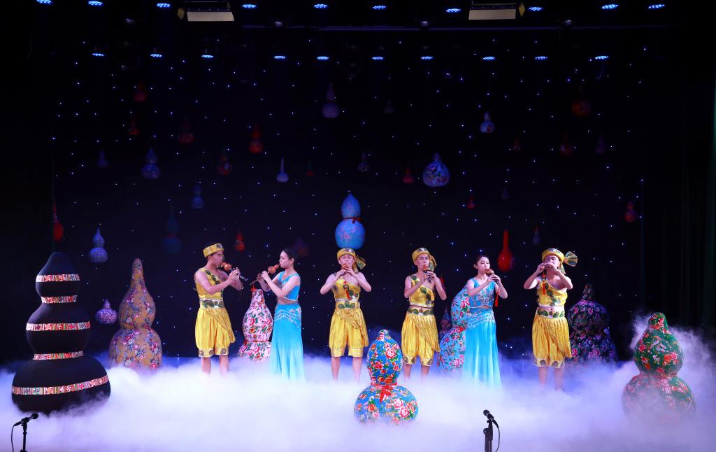 本次活动由党委副书记扈庆学策划,整场音乐会以展示葫芦乐器和图腾画符为主,以舞蹈、乐器表演、演唱等方式为载体。舞台上,黑色的幕布背景错落有致地悬挂着大大小小三十多只色彩各异的葫芦,在多彩变幻的灯光下别具一格,夺目耀眼。拉祜族舞蹈《快乐拉祜》为音乐会点亮开场,哈尼族、维吾尔族、藏族等民族舞蹈依次精彩上演,《芦笙舞》《瑶族舞曲》《抢新水》《欢腾的野阔》等一支支优美的舞蹈,节奏明快,气氛浓烈,配以葫芦宽广的音域,表现了少数民族能歌善舞的生活情貌;《茉莉花》《沂蒙山小调》《月光下的凤尾竹》《阿细跳月》等经典名曲被精彩演绎,一件件精致的葫芦乐器,或清脆明亮,或圆润柔和,演奏出民族的风情与风韵;《弹起我心爱的土琵琶》《婚誓》,一首首动人的旋律,融合多彩的画卷。除中国传统民族艺术之外,此次音乐会还完美地呈现了《巴西战舞》等异域葫芦艺术题材的舞蹈、乐器,展现了中外文明的交流与互鉴。