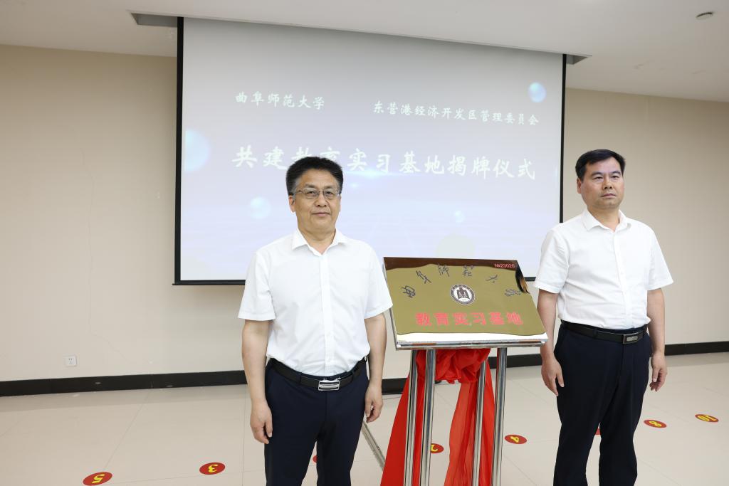 调研过程中,胡凡刚为教育实习基地揭牌,化学与化工学院、传媒学院分别与东营港经济开发区、东津渡创新创业基地签署教育实习基地战略协议书。