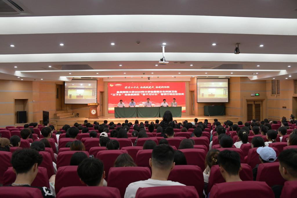 此次社会实践增设“百千万计划”专项行动,即组建百支以师范生为骨干的调研团队走进千所中小学校开展基础教育改革调研;组建百支以哲学社会科学学生为骨干的宣讲团队走进千个社区开展党的二十大精神和优秀传统文化宣讲;组建百支以理工科学生为骨干的实习团队走进千家企业开展访企拓岗职业体验。整个计划参与学生一万人。