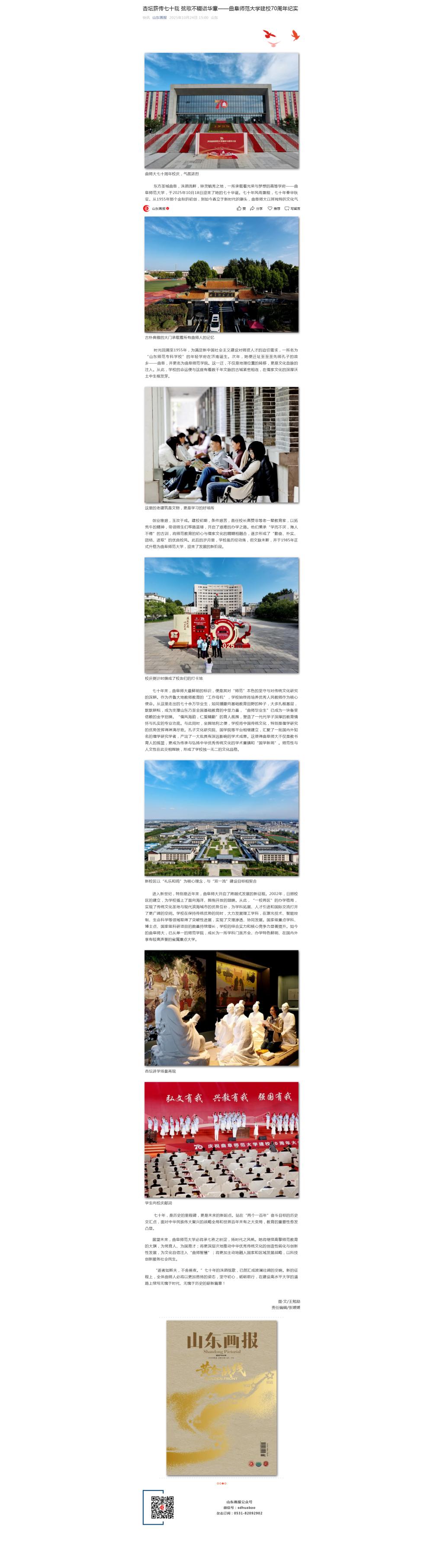 《山东画报》:杏坛薪传七十载 弦歌不辍谱华章——曲阜师范大学建校70周年纪实