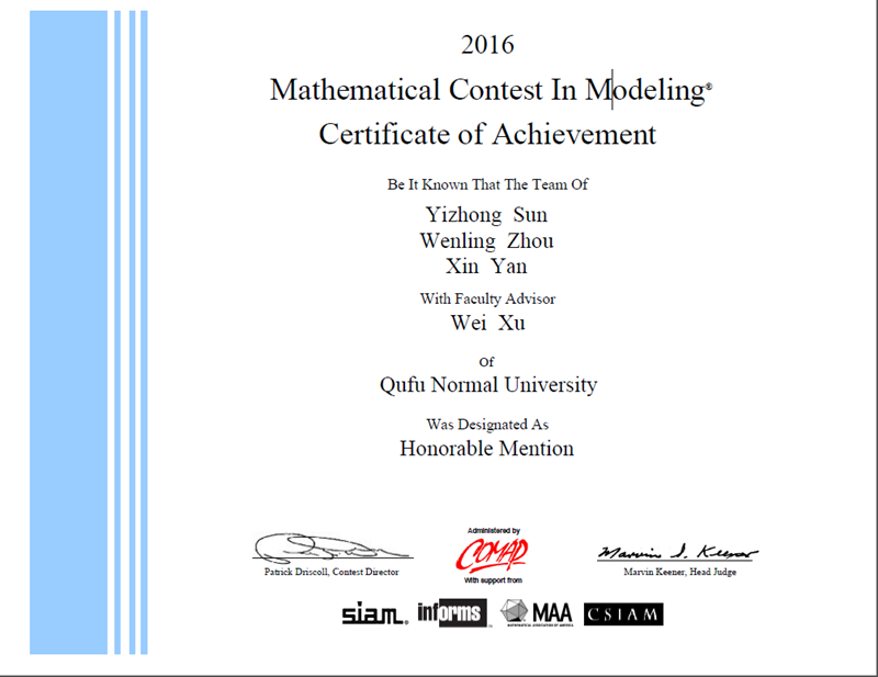 近日,2016年美国(国际)大学生数学建模竞赛(MCM/ICM)成绩揭晓。我校数学科学学院组织的参赛队伍在本次比赛中斩获国际二等奖(Honorable Mention)一项,信息科学与工程学院学生获得了两项国际二等奖(Honorable M...