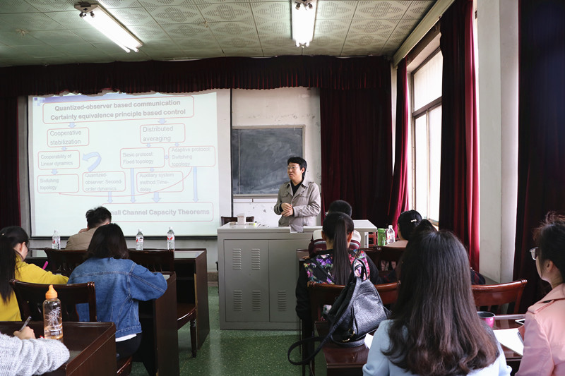 4月17日上午,上海大学机电工程与自动化学院李韬教授来我校做了题为“Communication and Control of Multi-Agent Systems”的学术报告。数学科学学院和自动化所的部分师生参加了报告会。会...