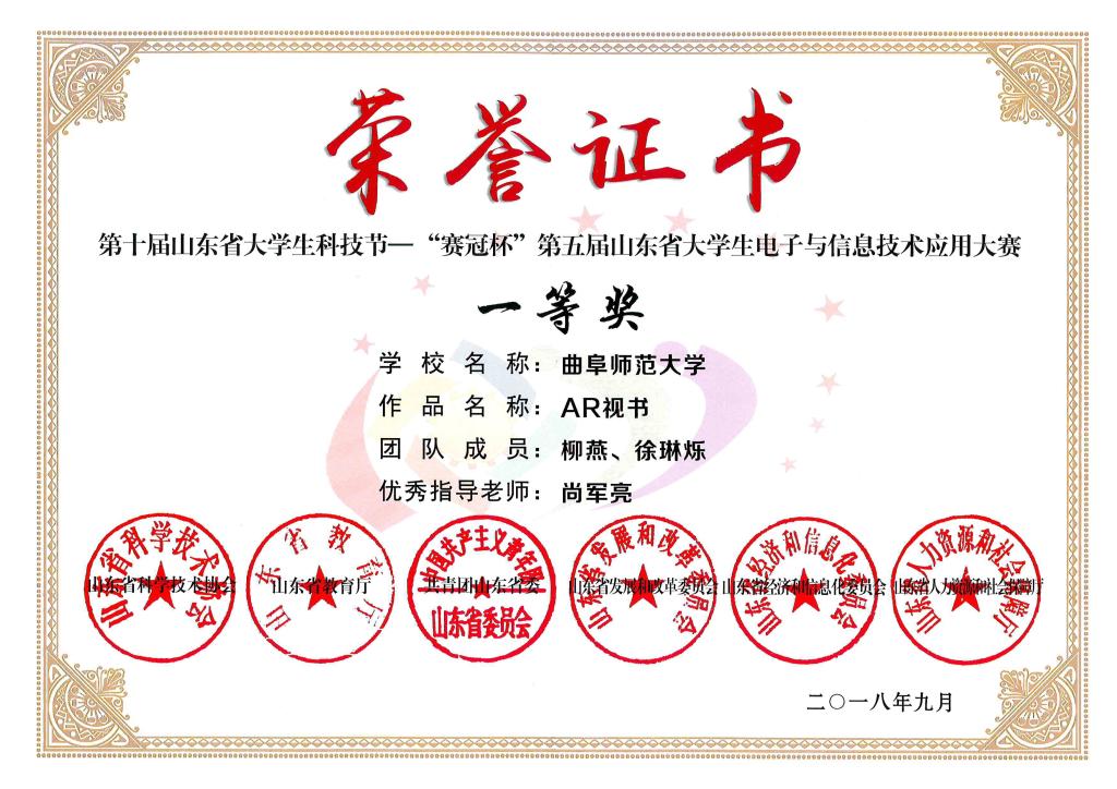 近日,在第五届山东省大学生电子与信息技术应用大赛中,我校信息科学与工程学院学生取得优异成绩,共获得一等奖2项、二等奖1项、三等奖4项、优秀奖1项,刘智斌、尚军亮被评为优秀指导教师。 山东省大学生电子与信...