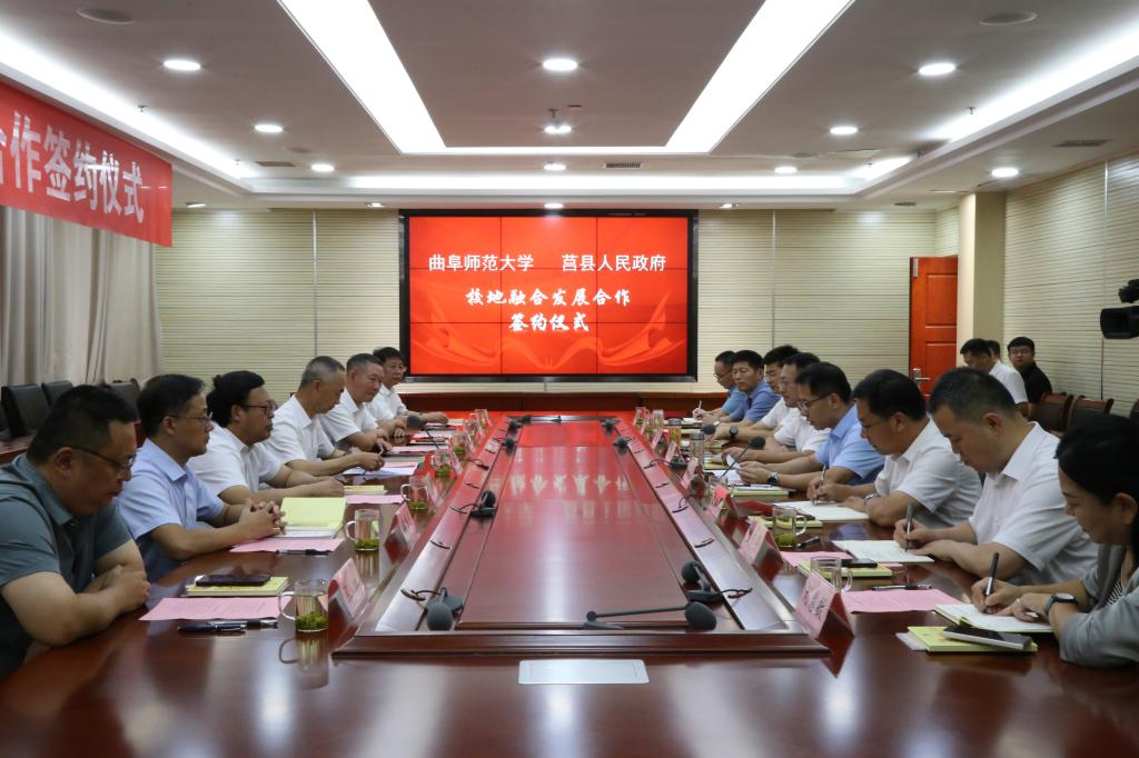 国内合作处讯 8月28日,曲阜师范大学与莒县政府举行仪式签署校地融合发展合作意向书,曲阜师大党委常委、副校长李兆祥,莒县县委副书记,县政府党组书记、县长陈振华出席仪式并代表校地双方签约。李兆祥在会上表...